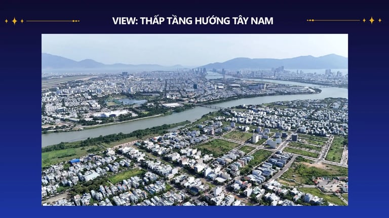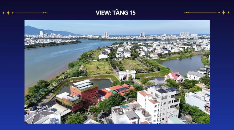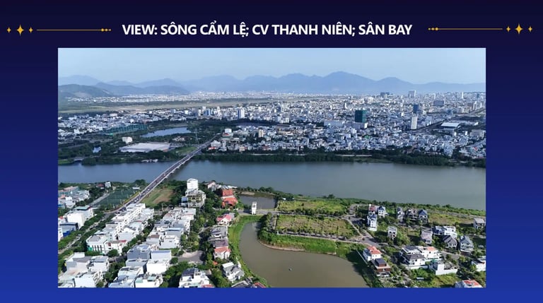 Với vị trí mặt tiền sông Cẩm Lệ, dự án mang đến tầm nhìn thơ mộng ra dòng sông và cảnh pháo hoa quốc tế DIFF ngay từ ban công.